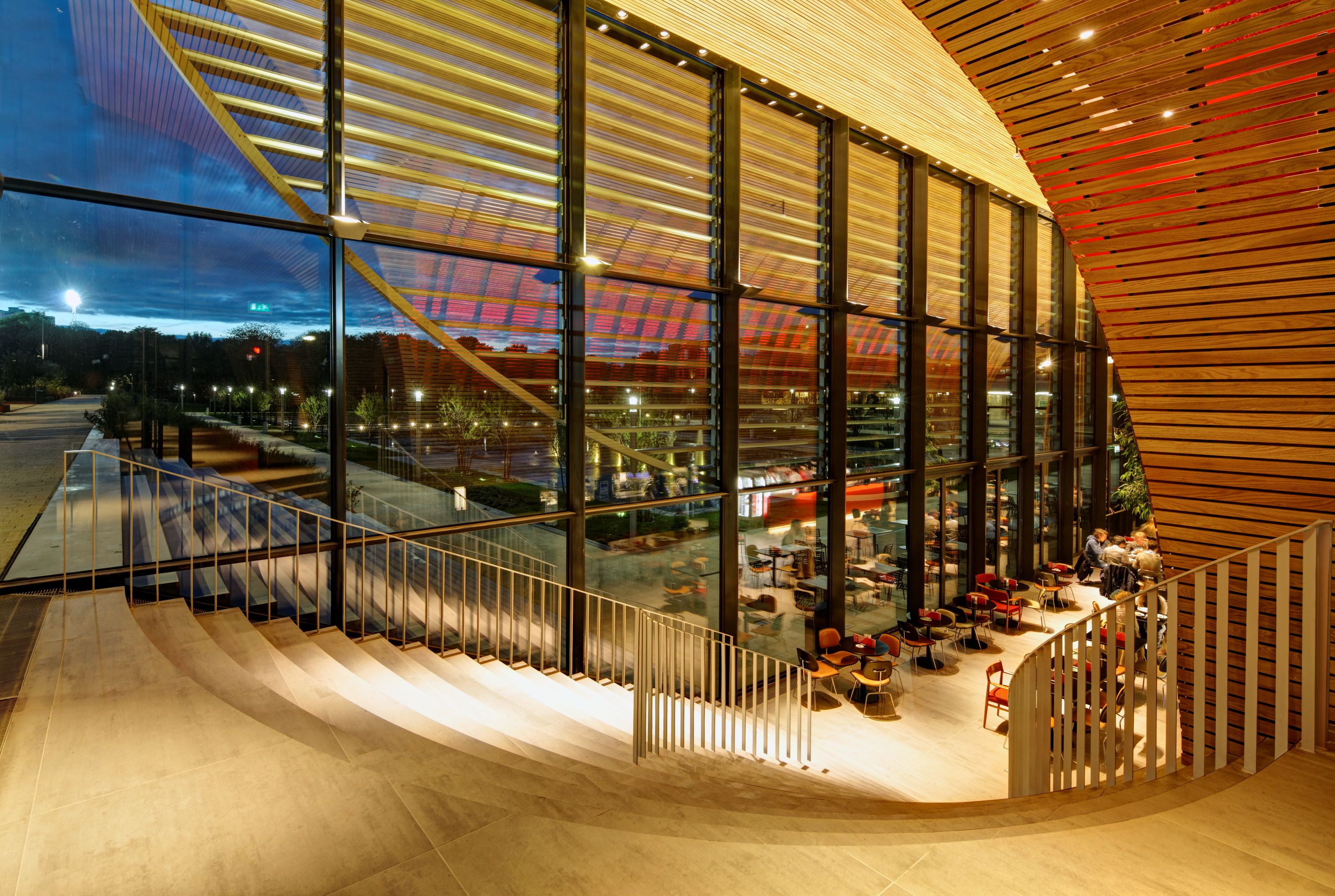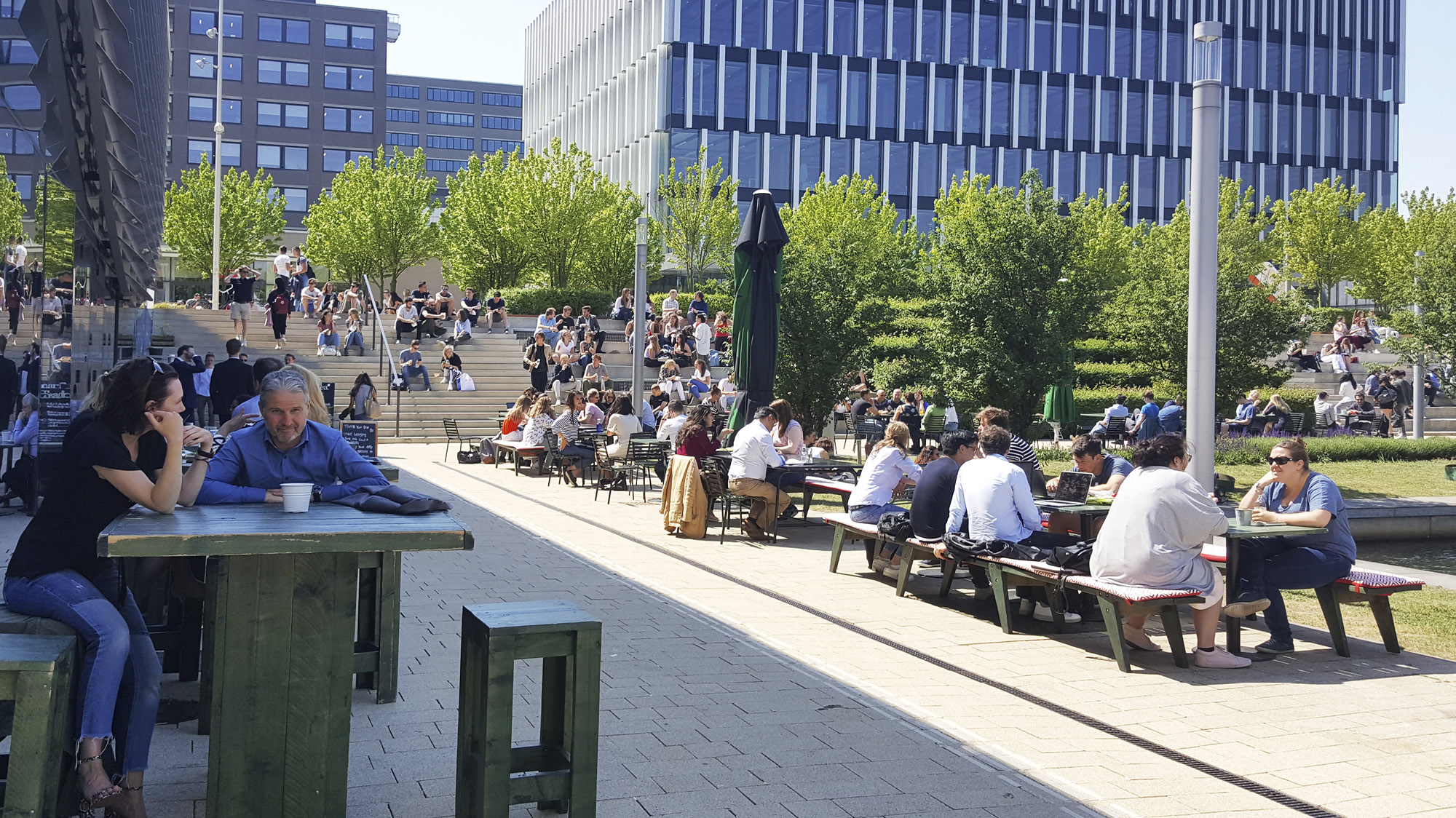 Two axes organise the campus. One of these, the University Plaza, acts as a main street, housing all the facilities such as a bookshop, restaurants, supermarket and a cafe.