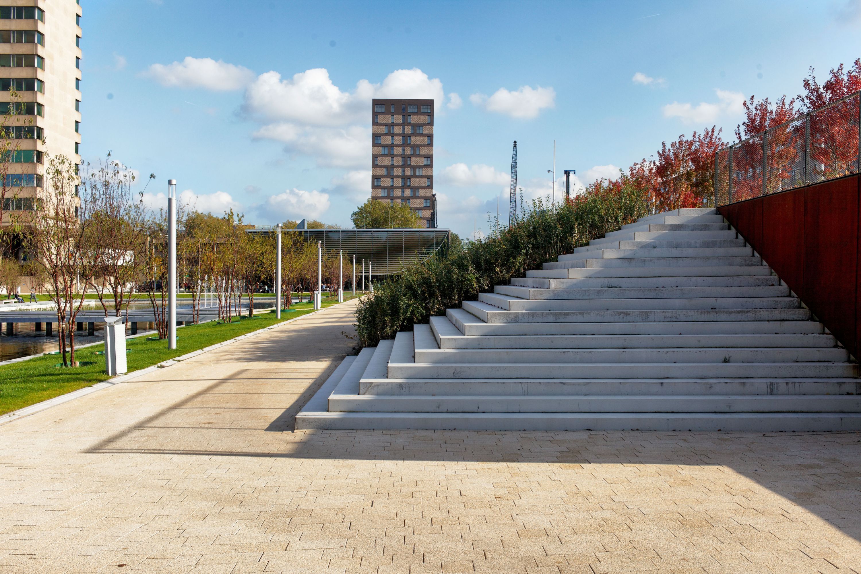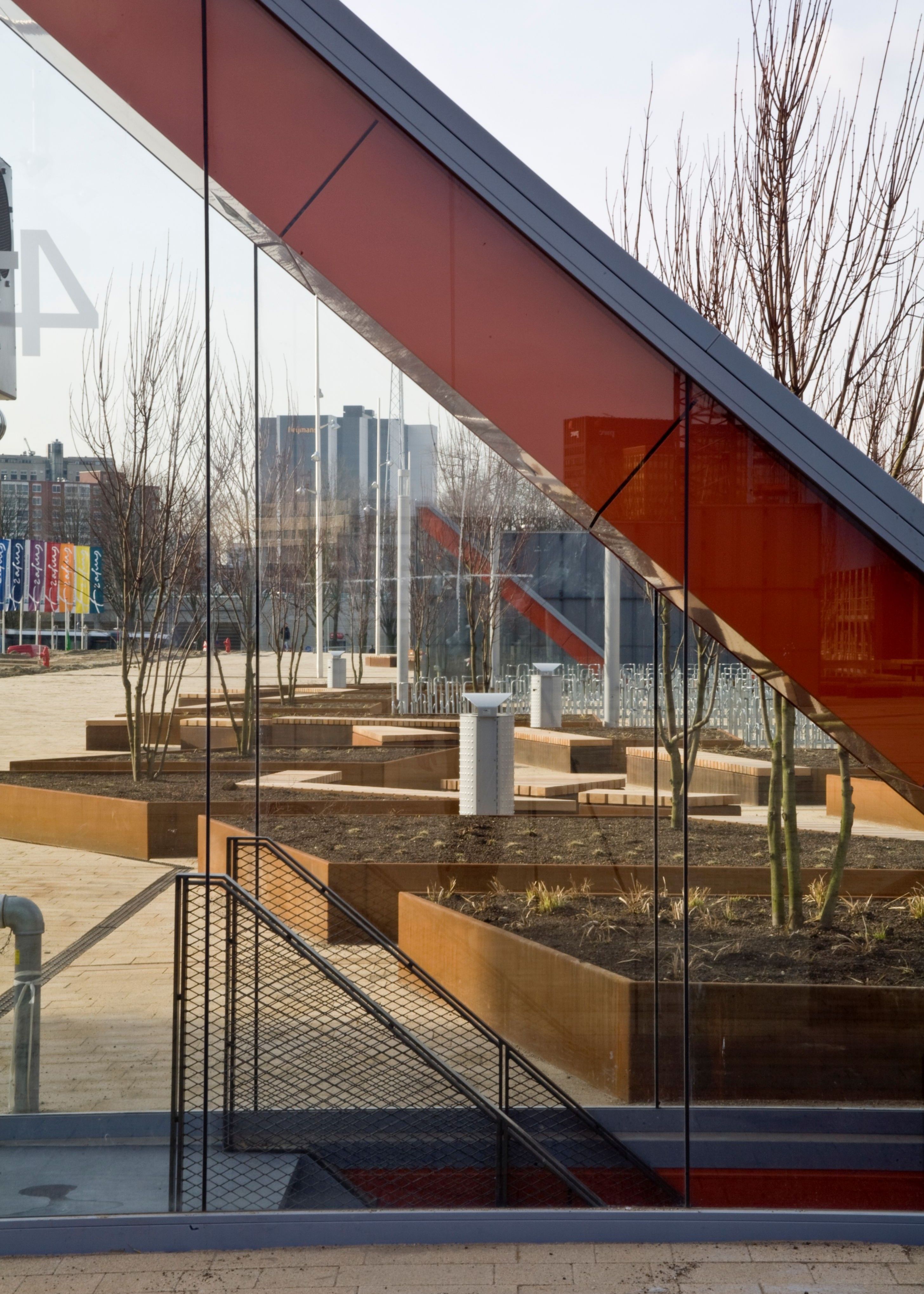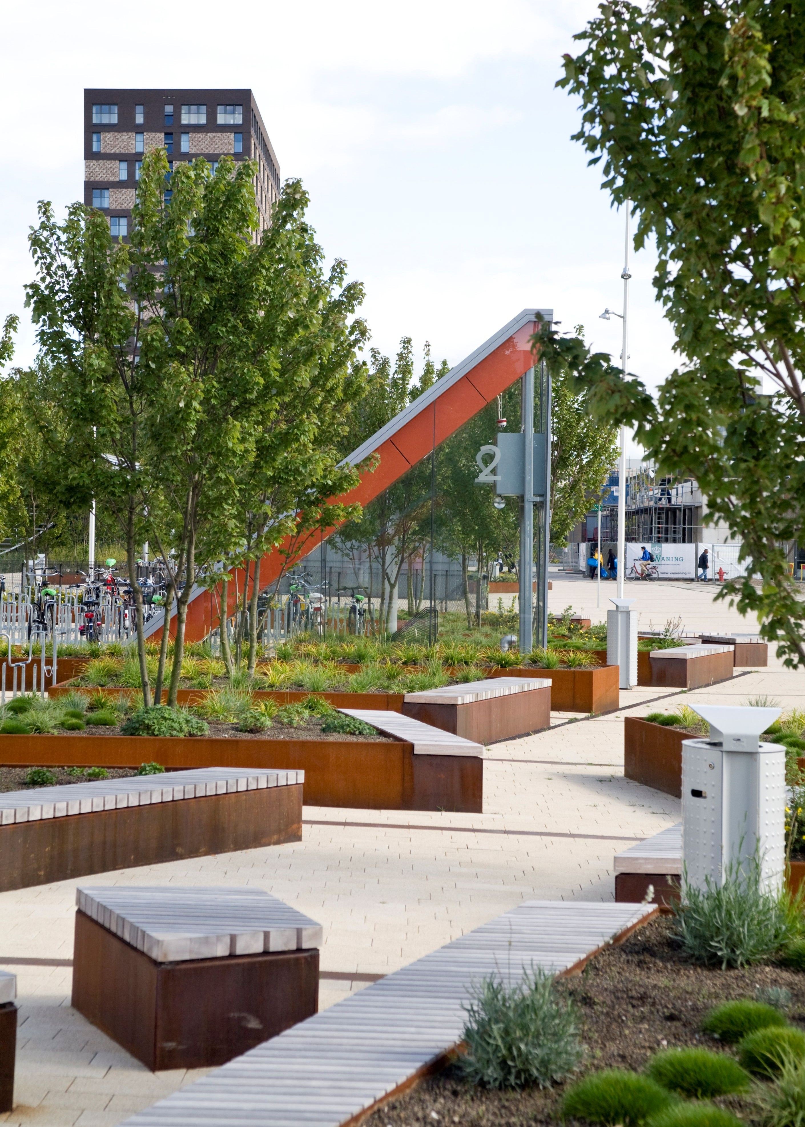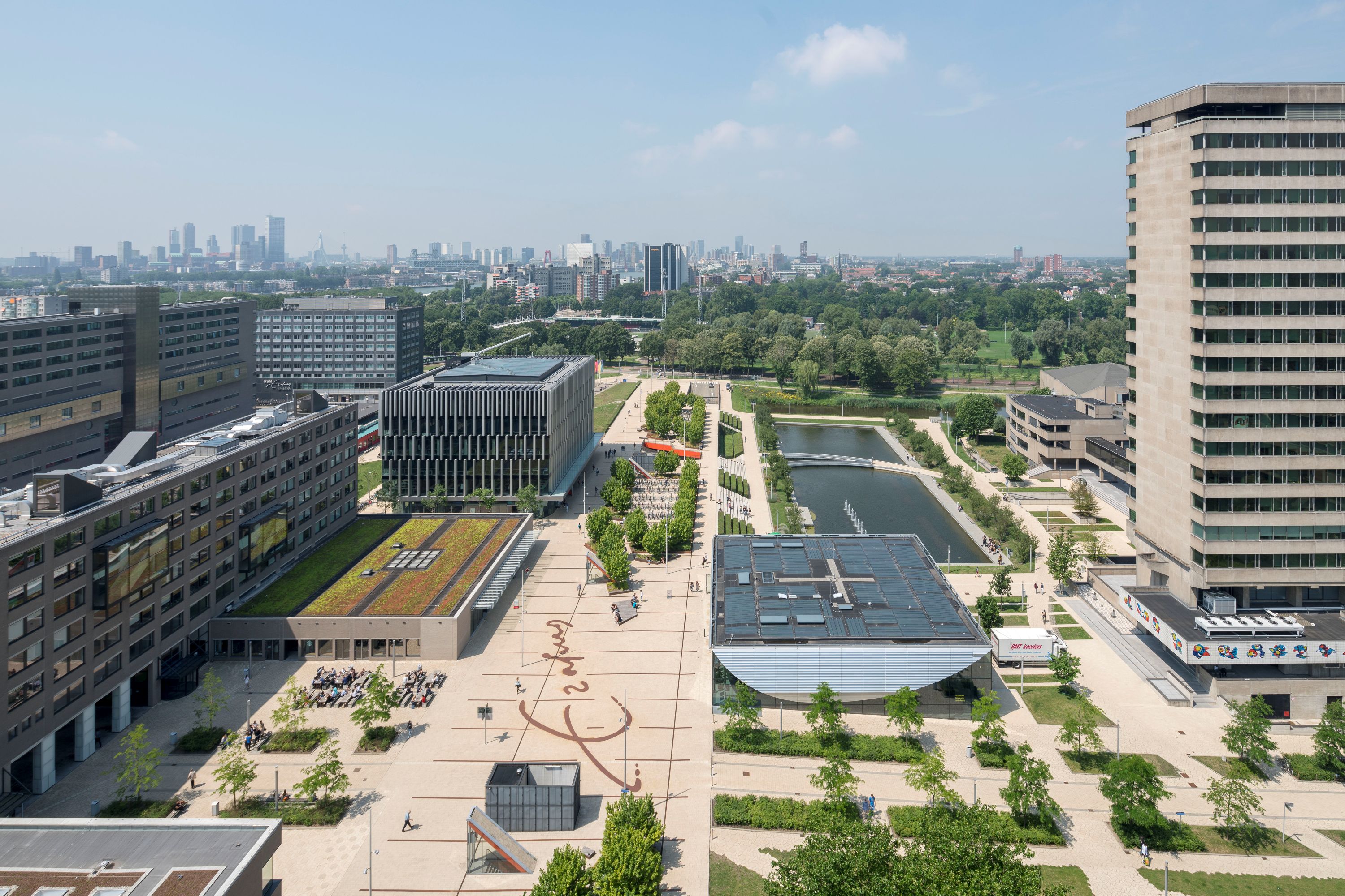 One of the central features in the development of Erasmus University master plan is the half-sunk garage connected to the Erasmus Plaza on the roof. This construction marks the new central main entrances of the university campus.