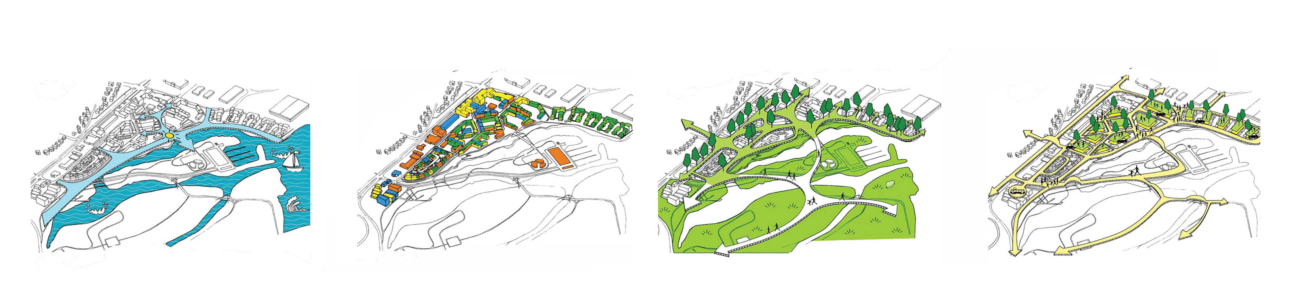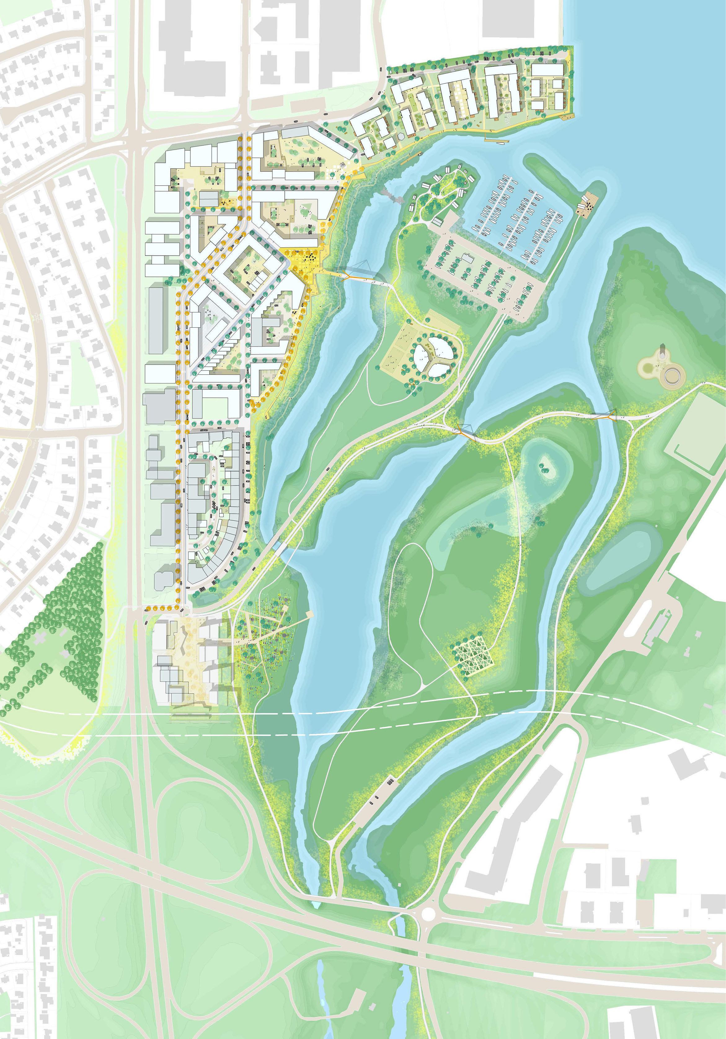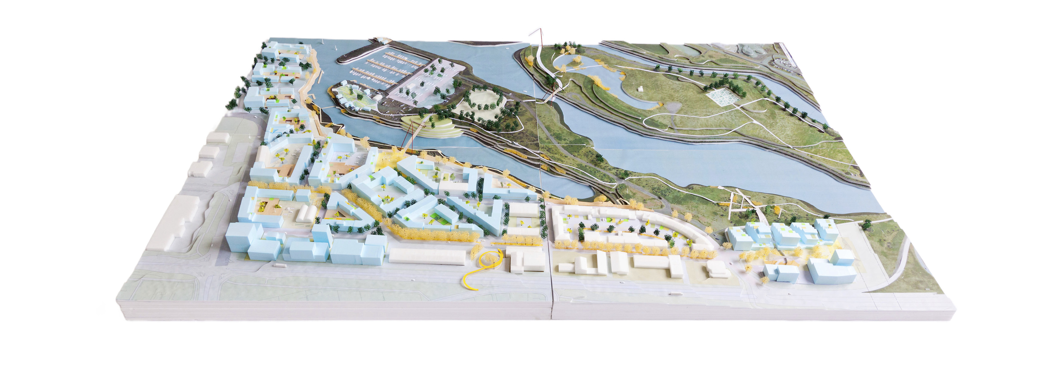 The masterplan replaces a harsh industrial context with a clear, diverse urban structure: well-proportioned streetscapes, active plinths, and a new public waterfront that invites people of all kinds. Smooth multimodal connections and ecological water management are integrated from the ground up, while the design responds to the diverse wishes of the many stakeholders involved in shaping this new part of the city.