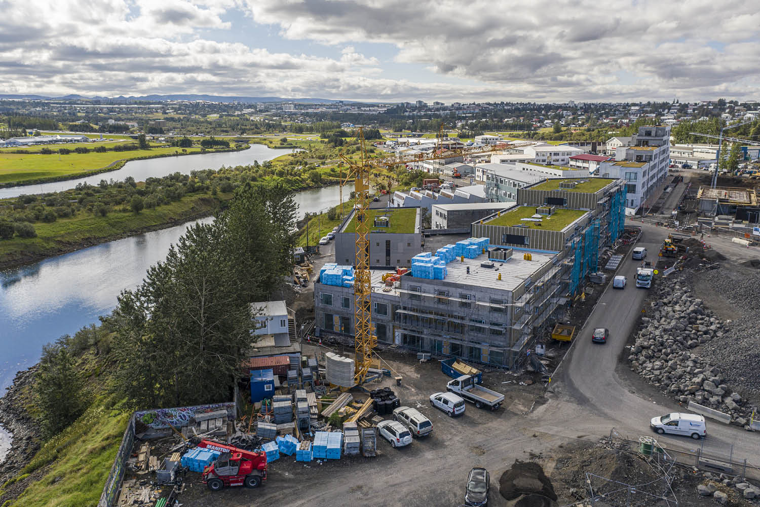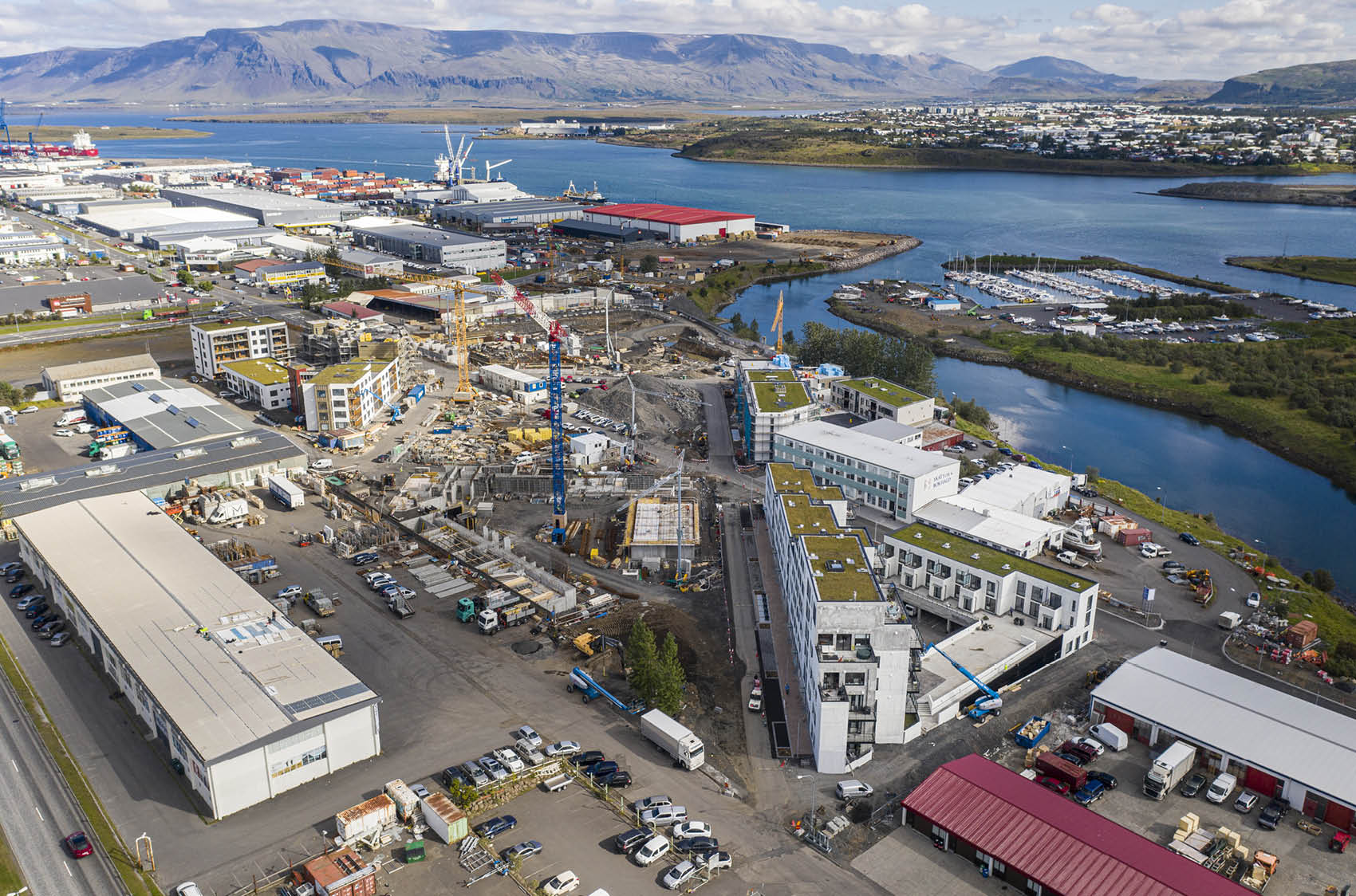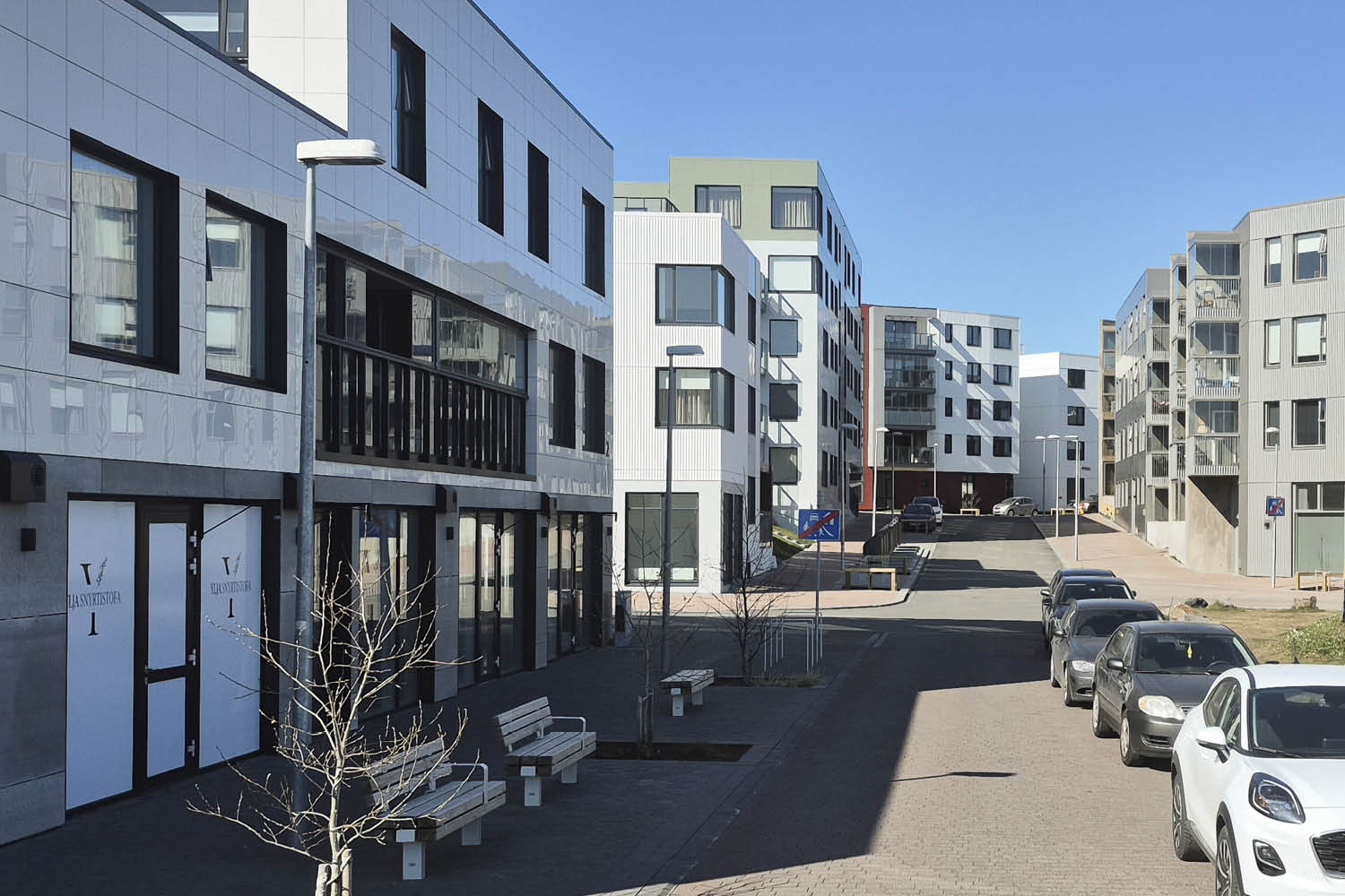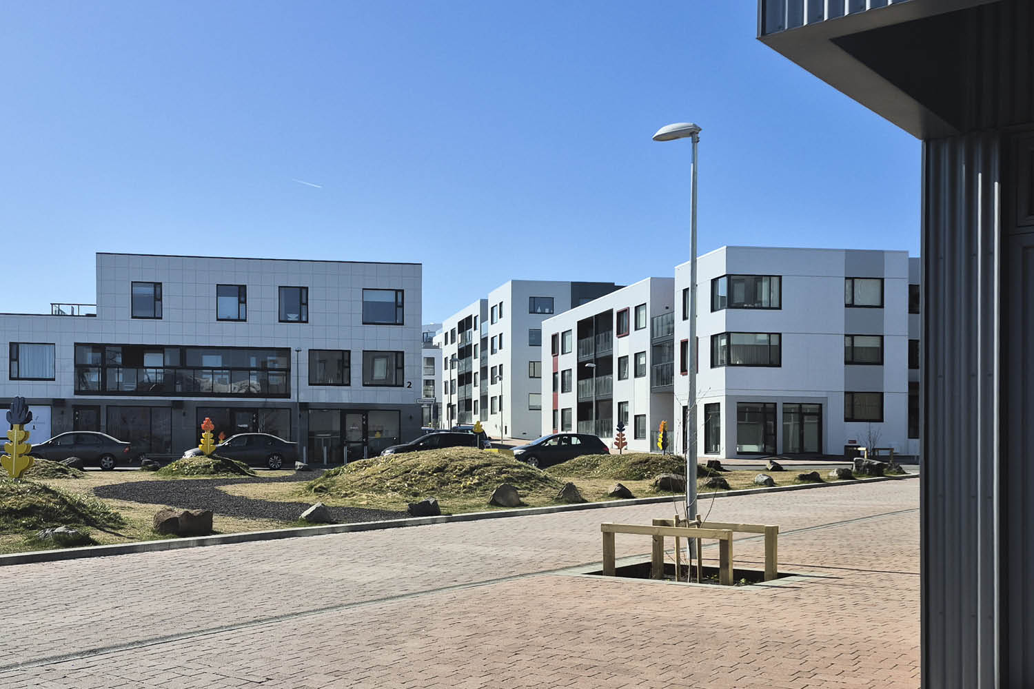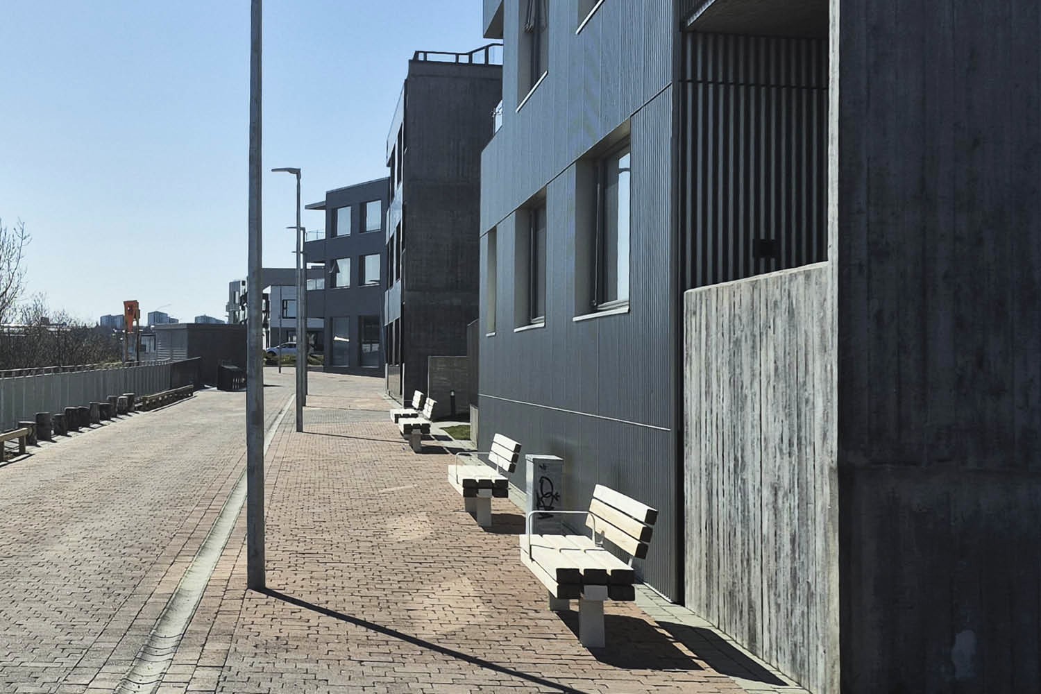 Where the public space of the area has been functionally designed, it represents a shift from the way urban public space is often treated in Reykjavik. Streets with sidewalks and trees, underground waste containers, ground floors with public programs and street furniture to enjoy the landscape altogether give the neighborhood a pleasant domestic vibe.